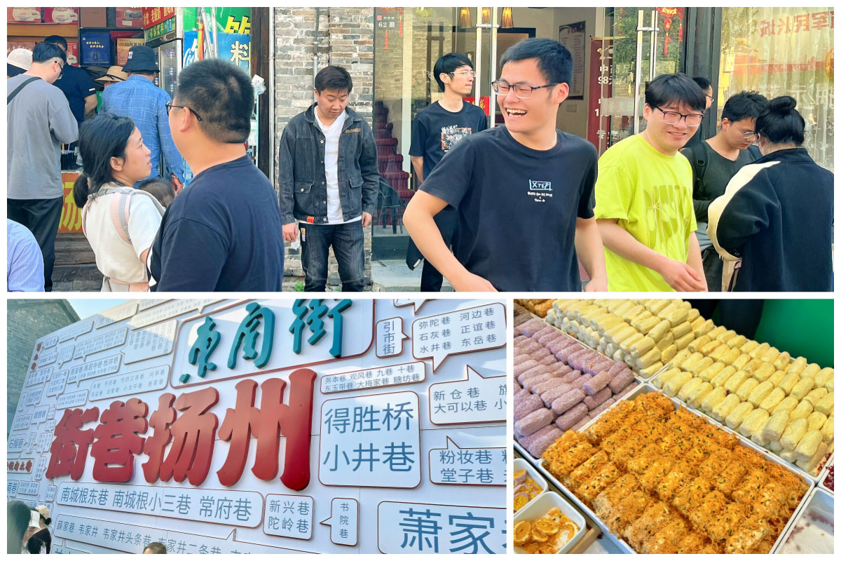 古色古香的店鋪門前,飄著誘人的香氣。大麒麟閣的百年糕點(diǎn)、阿三嫂的地道淮揚(yáng)菜、聚香齋的酥脆燒餅、高氏的祖?zhèn)鞴鸹赘狻雌鹆嘶锇閭儗γ朗车臒o限向往。